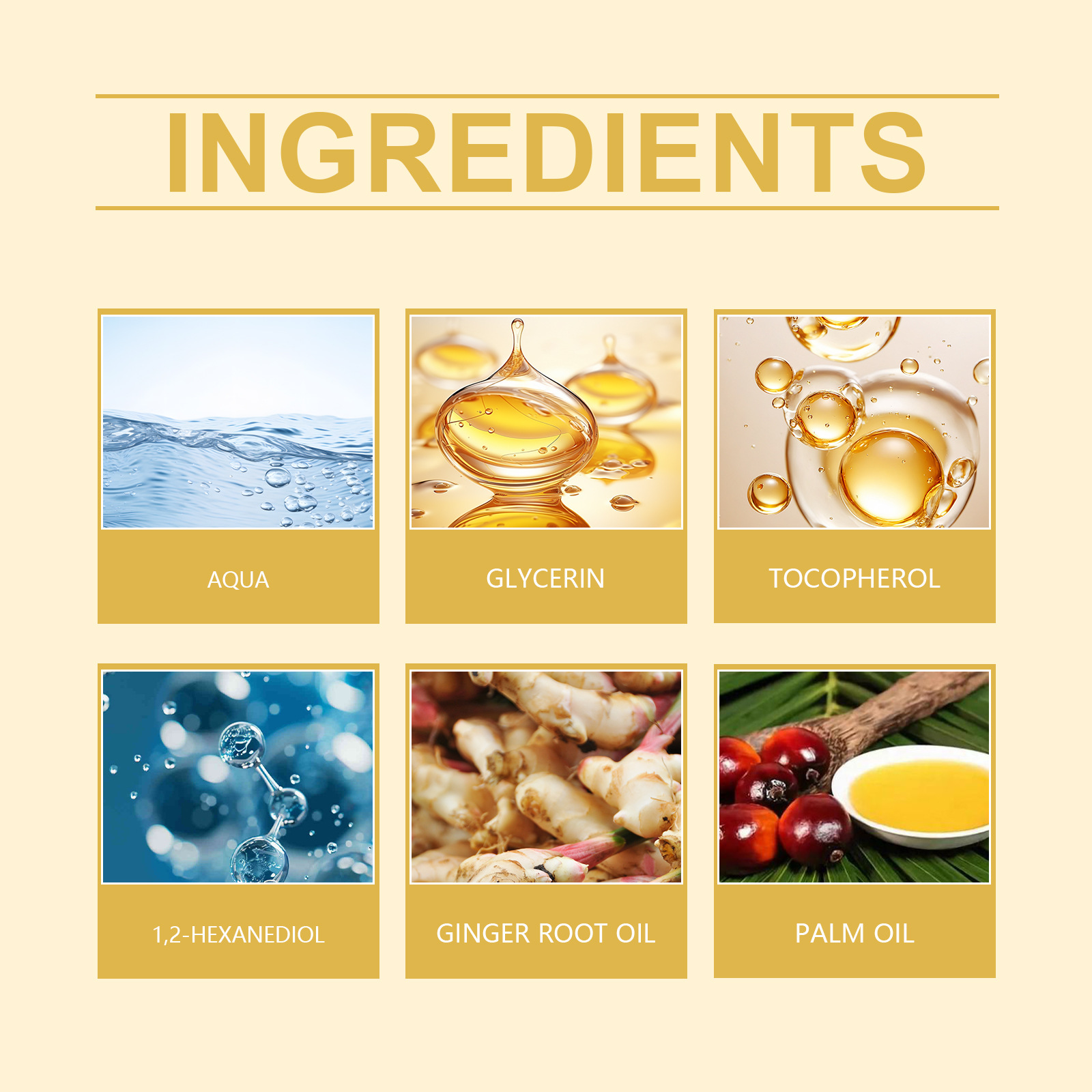 Ingredients:Water, Glycerin, Tocopherol Vitamin E, 1,2-hexanediol, Ginger Root Oil, Batana Oil